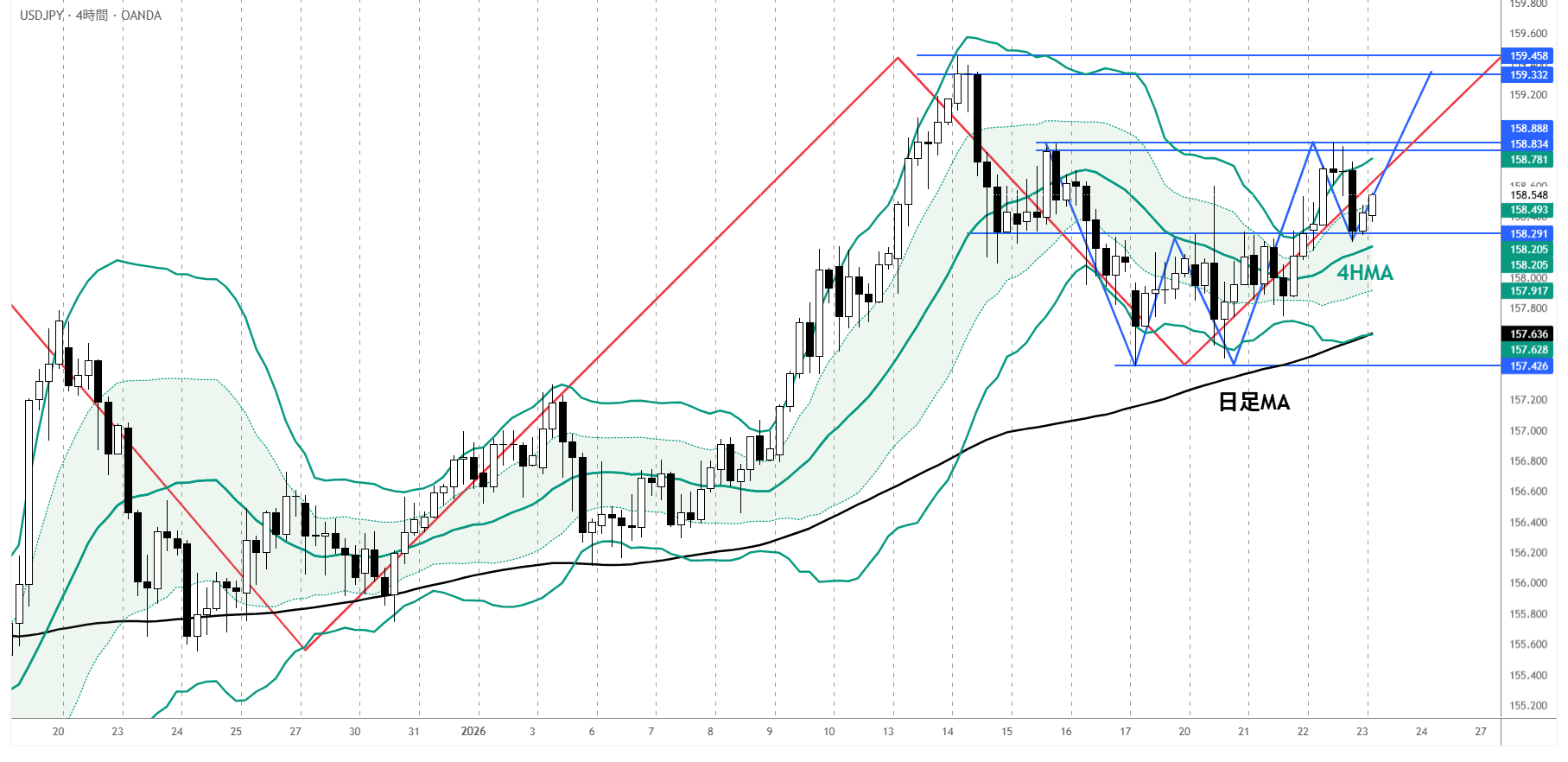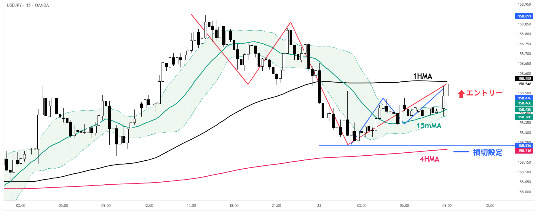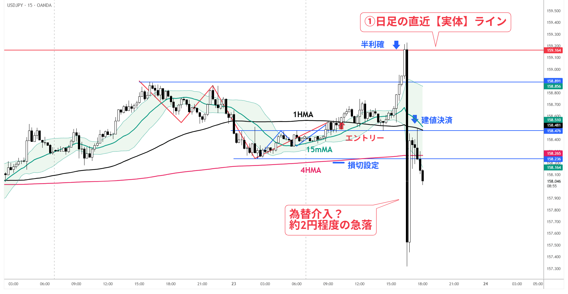 【トレード解説】2026-1-23 USD/JPY 4H押し目+15mトレンド転換を狙ったトレード